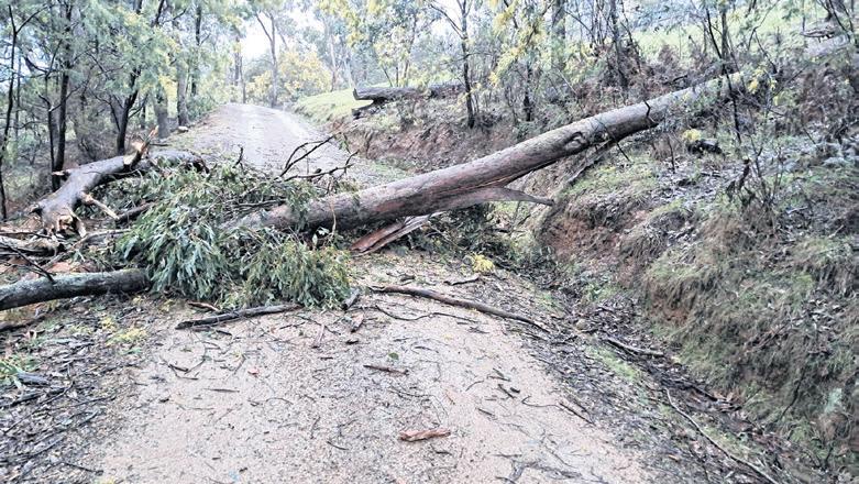 WILD WINDS BLOCK ROADWAYS: Last Friday’s rain and Saturday’s winds saw a number of trees fall across access TO: Bright SES
