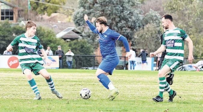 OVERLAP RUN: Tom Capperllari and Toby Cossor combine to move the ball forward.