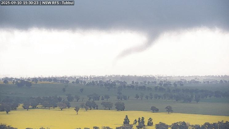 The tornado on Wednesday was spotted by the NSW Rural Fire Service tower near Tubbul and though it didn’t last long it has caused damage to trees and powerlines