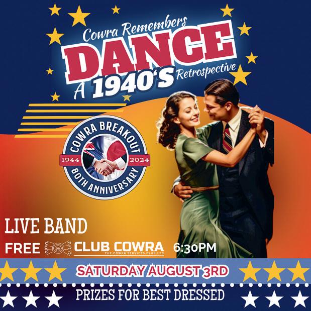Club Cowra invites you to take yourself back to the 1940s. You can win prizes for the best dressed period costume, and you can enjoy the Big Band tunes.