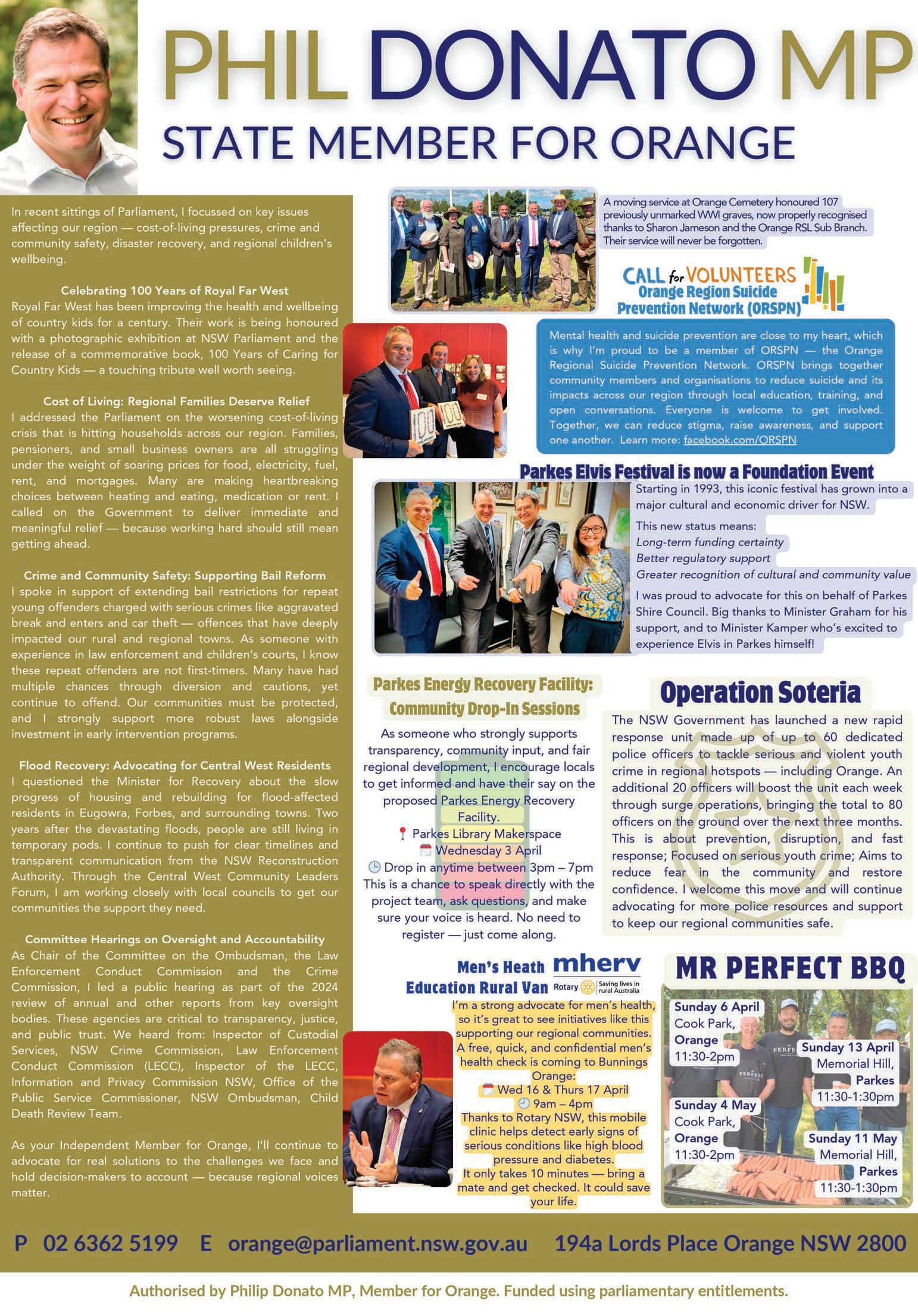 He is an active member of the Canowindra Show Society and serves as the organiser of the Canowindra Crop Competition.