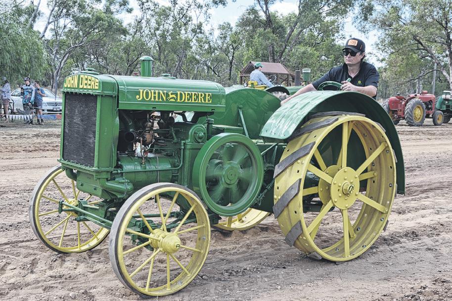 ABOVE: Andy Mackenzie from Molong showing his 100-year-old John Deere D Spoker tractor. RIGHT: Chris and Alfie Green from Forbes with Chris’ grandfather Jack Green’s John Deere Model D tractor from the 40s-50s.