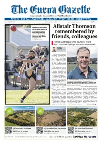 (03) 5795 2535 | www.nutrienharcourts.com.au | 13 Binney Street, Euroa Your Local Real Estate Specialists 455 Tames Road | Strathbogie 105 acres FOR SALE $675,000 - $720,000 Col Broughton | 0428 570 780 1370 Harry’s Creek Road | Marraweeney 164.44 acres FOR SALE $850,000 - $900,000 Col Broughton | 0428 570 780 603 Tames Road | Strathbogie 5 acres FOR SALE $675,000 - $735,000 Col Broughton | 0428 570 780 JUST LISTED JUST LISTED Wednesday, June 5, 2024 AVENEL - EUROA - LONGWOOD - NAGAMBIE - STRATHBOGIE - VIOLET TOWN Phone: (03) 5795 3041 www.euroagazette.com.au $2.00 (inc.GST)