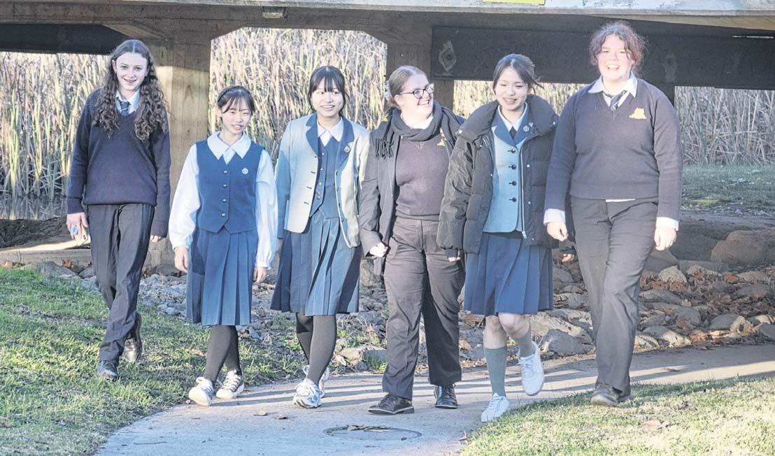 THREE exchange students from Tokyo, Japan are loving life in Euroa and Longwood. Pictured are Olivia Thomson, Hanon Ishii, Rei Nagaoka, Elizabeth Ireland, Fumika Nishira and Molly Vandershoor. Story on page 3.