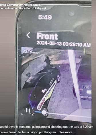 CCTV footage posted by a Euroa resident on the Euroa Community Noticeboard Facebook page on Monday morning appeared to show a dark-haired male dressed in dark clothing, carrying a plastic shopping bag, attempting to open a car door and quickly walking away upon finding it locked.