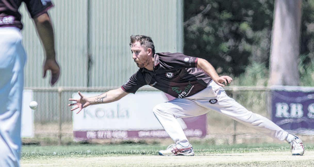 FAST REFLEXES: Conner McCombe swi ly stops the shot with quick thinking o his own bowling.