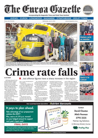 breached, by far the most prominent offence recorded. The number of breaches rose to 229 this year after only 68 were recorded in 2021. Of the 710 offences, 235 of these were committed in Nagambie, 167 in Euroa, 49 in Longwood East, 39 in Avenel and 35 in Violet Town. The data does recognise a state-wide decrease in crime over the past 12 months. The rate of recorded offences decreased 11.9 per