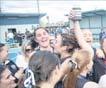 FULL FLIGHT: Henry Taylor charges towards the crease, ready to make his mark.