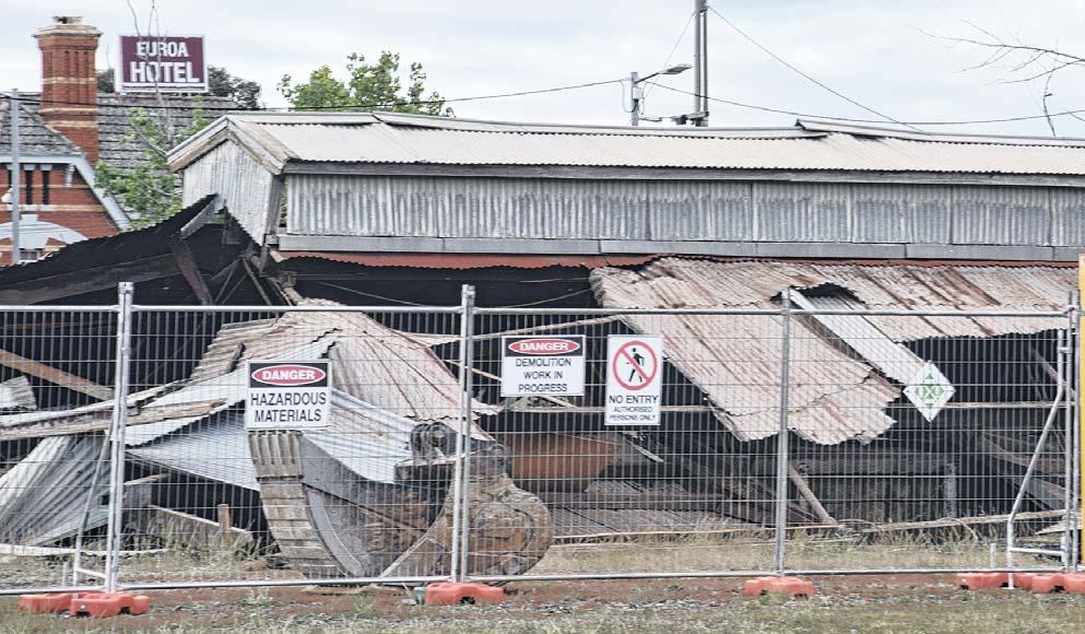 MID-DEMOLITION: The 1873 Euroa Goods Shed on Tuesday morning last week. PHOTO: Darren Chaitman
