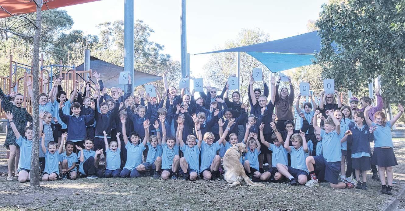 EUROA Primary School celebrates after learning they will receive almost a $1 million in federal funding for a much-needed playground revamp. Teachers and students are holding signs that read “$968,270.00”, the sum they will receive. Story on page 5.