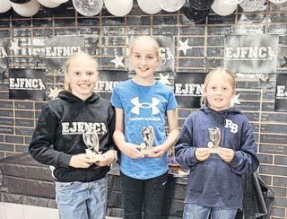 BIG CONGRATULATIONS: Under 11s Best and fairest Paige Enright, Runners up Matilda Eddy, and Coaches Award Ella Kelly.