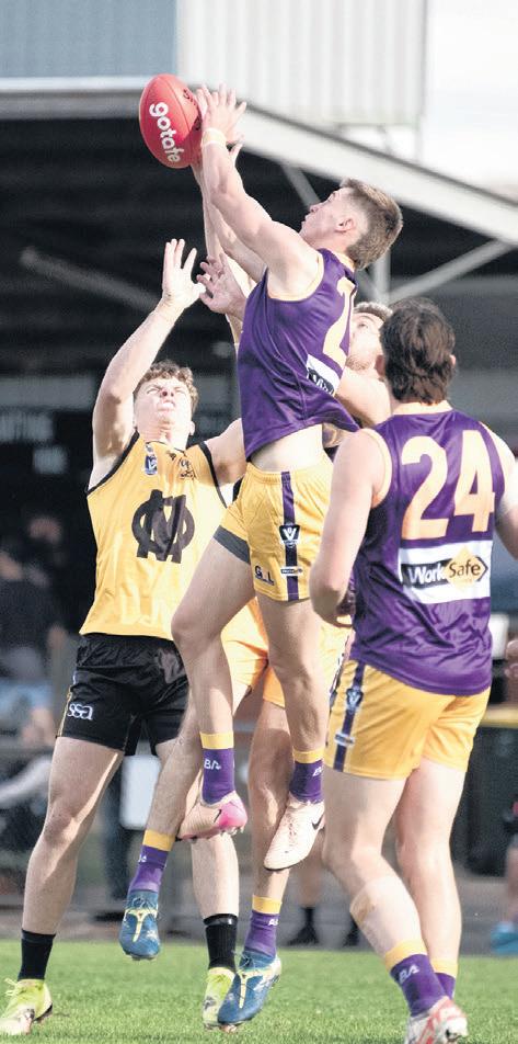 Euroa’s own Cohen Paul impressed for GVL seniors despite the heavy loss to O&M, who dominated the contest, moving the ball swi ly and precisely to secure a com-