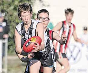 RELIENTLESS PRESSURE: Jett Trotter applies intense pressure, aiding GVL in a narrow victory against Ovens and Murray.