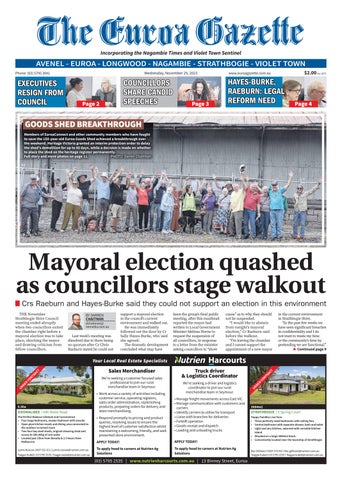 in the current environment in Strathbogie Shire. “In the past few weeks we have seen significant breaches in confidentiality and I do not want to waste my time or the community’s time by pretending we are functional.” ■ Continued page 9