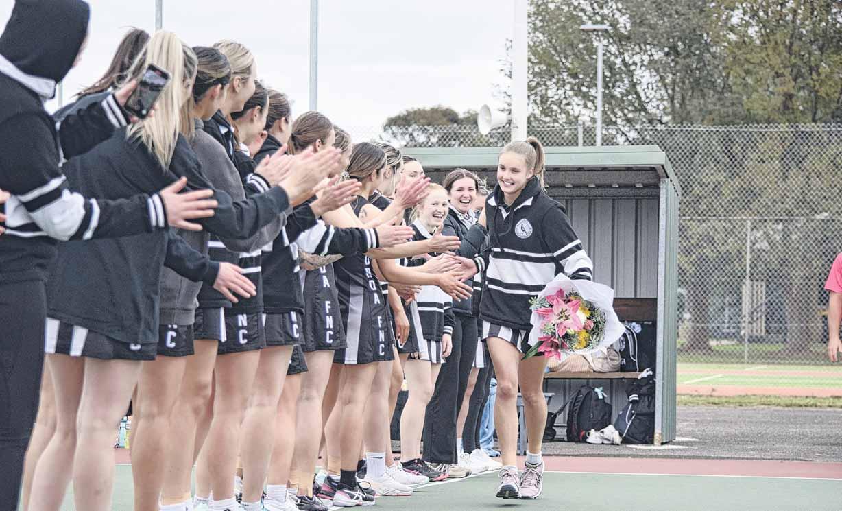 Euroa Magpies A grade player Eliza Hoare celebrated her 150th game with teammates giving her a guard of honour.