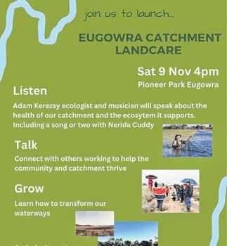 At Pioneer Park in Eugowra from 4pm listen to ecologist Adam Kerezsy about the health of our catchment and the ecosystem it supports. Connect with others working to help the community and catchment thrive and learn how to transform our waterways and why it matters. BBQ available, please register for catering via humanitix.