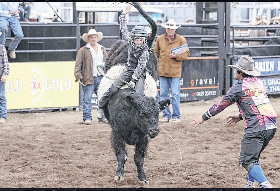 PICTURED RIGHT: Koby Read rode consistently across three big rounds to secure equal fi h in the ABCRA finals and (inset) Red Bend Catholic College student Stevee Besant was named national champion cowgirl of the season a er an outstanding campaign with her horse in the barrel racing.