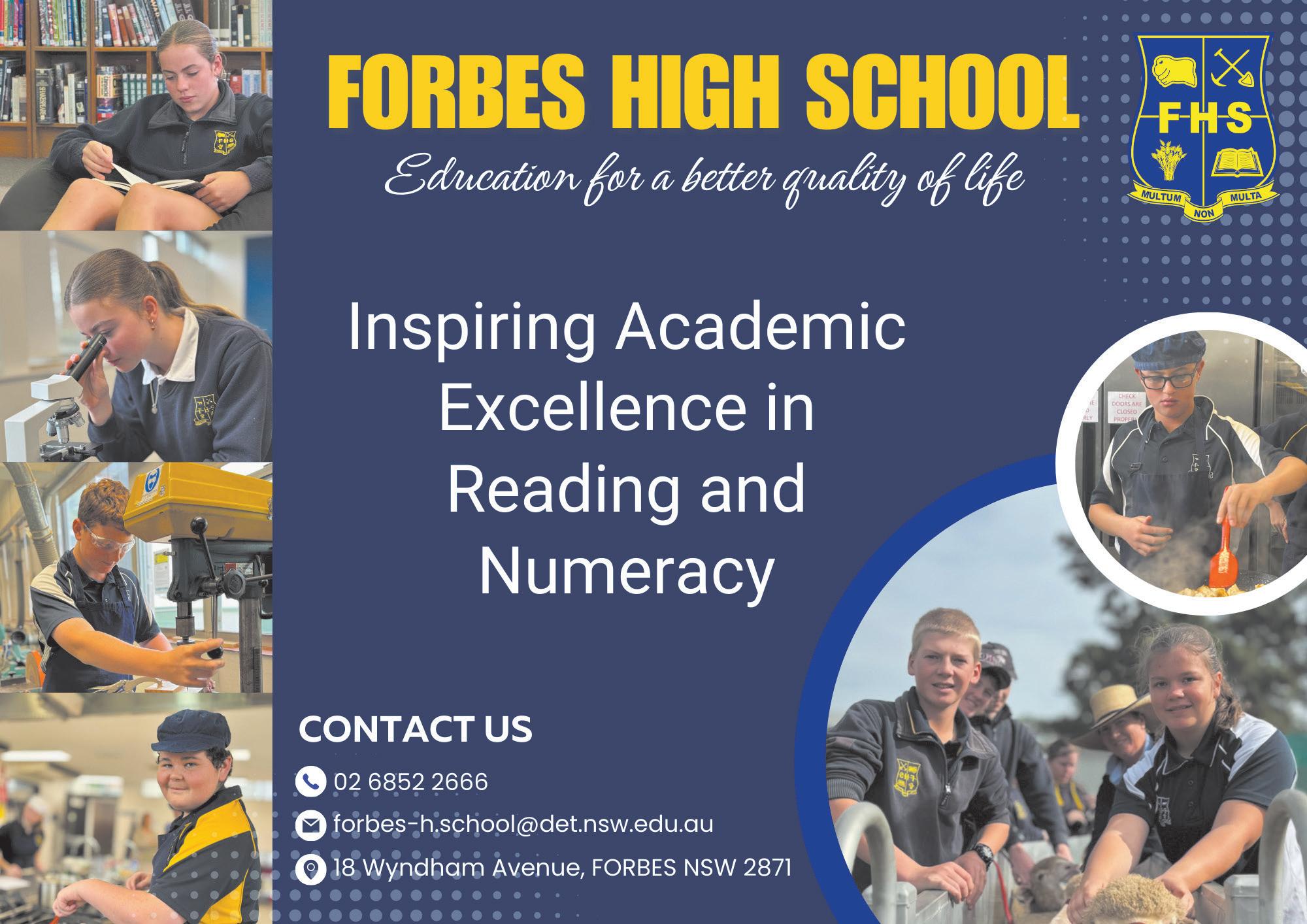FORBES High is one of 10 regional and rural public schools in the state being recognised for academic improvement a er the 2024 HSC. From 452 public high schools with some 68,000 Year 12 students, Forbes High’s HSC results were among 24 that stood out for increasing the number of students achieving in the high bands of the HSC - with consistent growth over the past seven years.