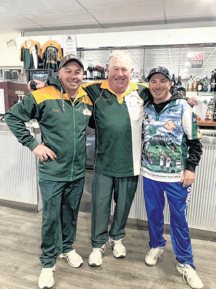 Our triples game was played by Peter Mackay, John Kennedy and Laurie Crouch verse Tim Everest, Posso Jones and Wayne Burton.