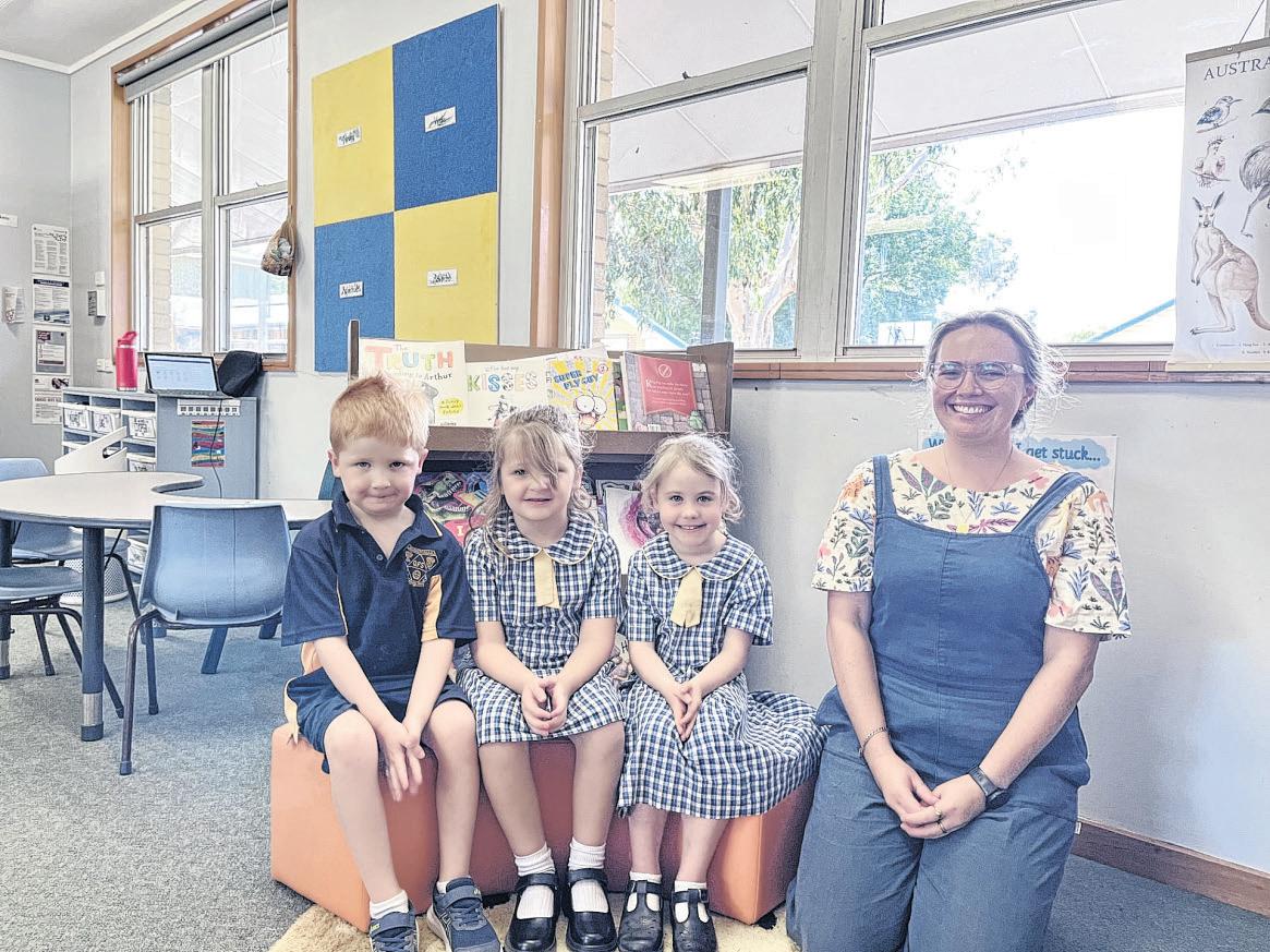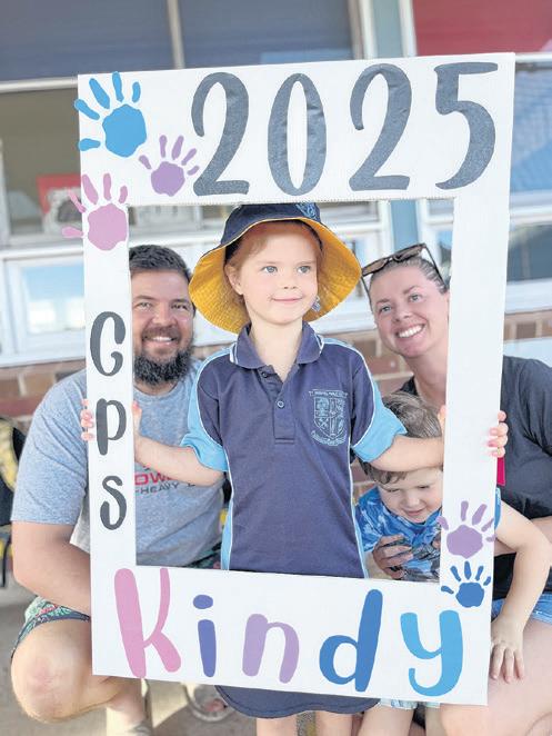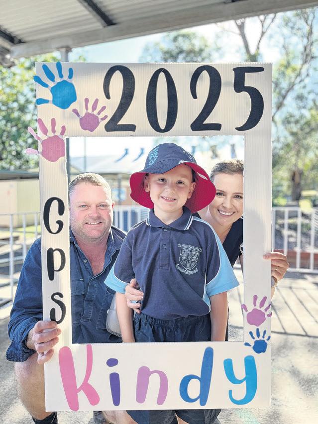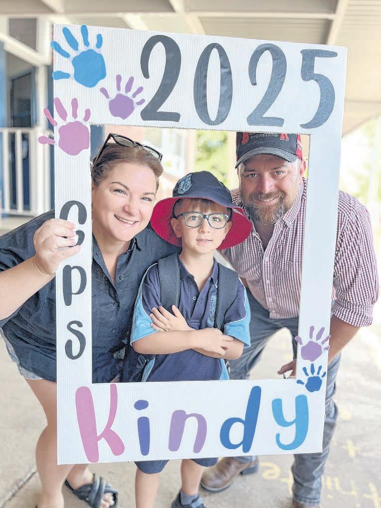 SCHOOLS around the region have welcomed new students to their first day of kindergarten as the school term has begun. Pictured above is Logan, Tanya, Stephen and Fletcher Kermath who were all excited for Logan on his first day of kindergarten. For more photos of the kindergarten class of 2025 heading into school for their first week, head to pages 4 and 8. PHOTO: Supplied