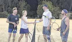 By LYN FOOTS MANSFIELD, BOWLS CLUBLAST Tuesday saw the semifinals of the home pennant with the Red team of Mick Walsh, Doug Morley, Ian Morley and Anne Tilbrook taking an exciting win over the Pink team of Marco Bohren, Yvonne Robinson, Belinda Snider and Theo Scheltinga by one shot 21/20.