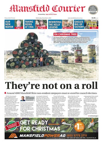 They’re not on a roll Around ou d 4000 000 Mansfield a s e d Shire S e non-resident o es de t ratepayers atepaye s must ust re-enrol e e o for o cou council c elections e ect o s LOCAL Government voter entitlements for Mansfield ratepayers have changed under new State Government laws, with approximately 4000 who will now need to re-enrol. That amounts to between 40 to 50 per cent of the overall number of the shire’s population that will need to be contacted and re-enrolled. Mansfield Shire Mayor Cr Steve Rabie said the new provisions introduced by