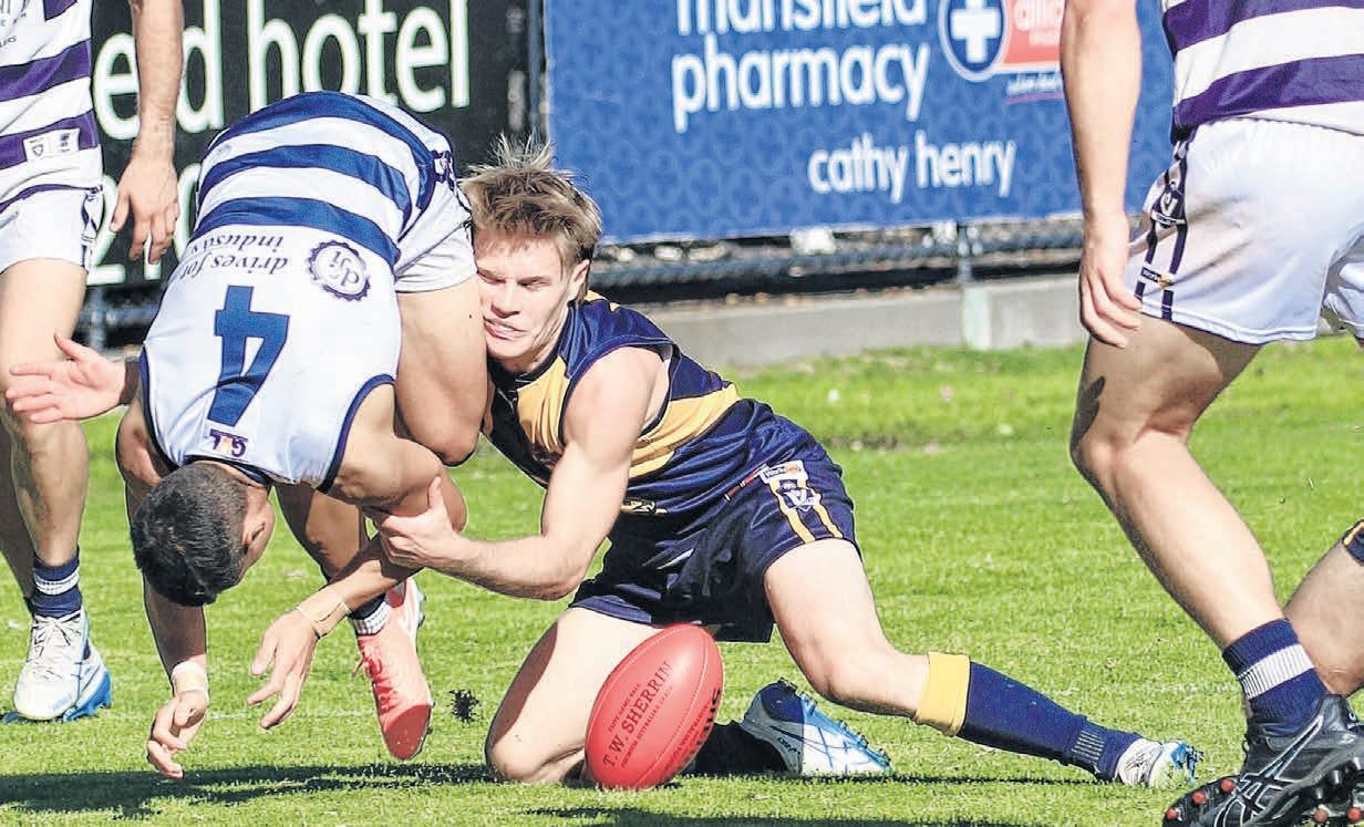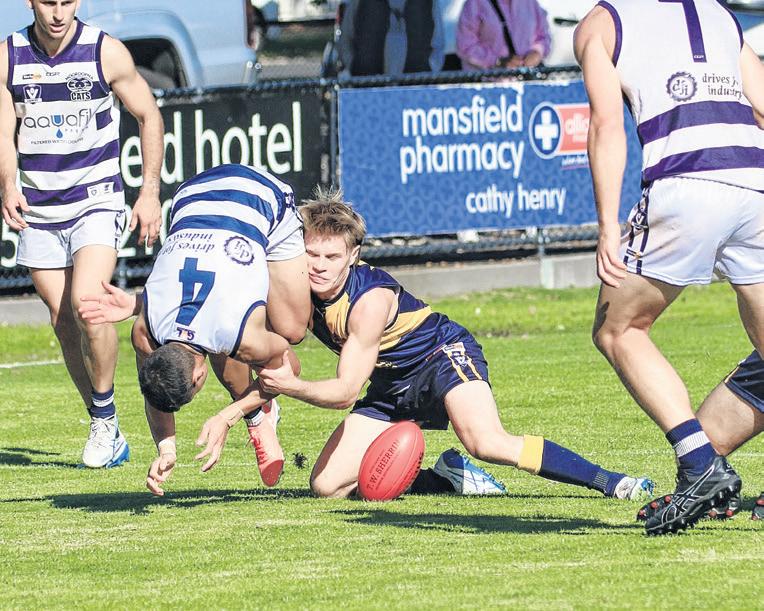 when they did, an aggressive defence was waiting for them. INSET: QUALITY PERFORMANCE: Mansfield looked dominant all over the park, barely giving Mooroopna a glimpse of hope a er recovering from a slow start in the first quarter.