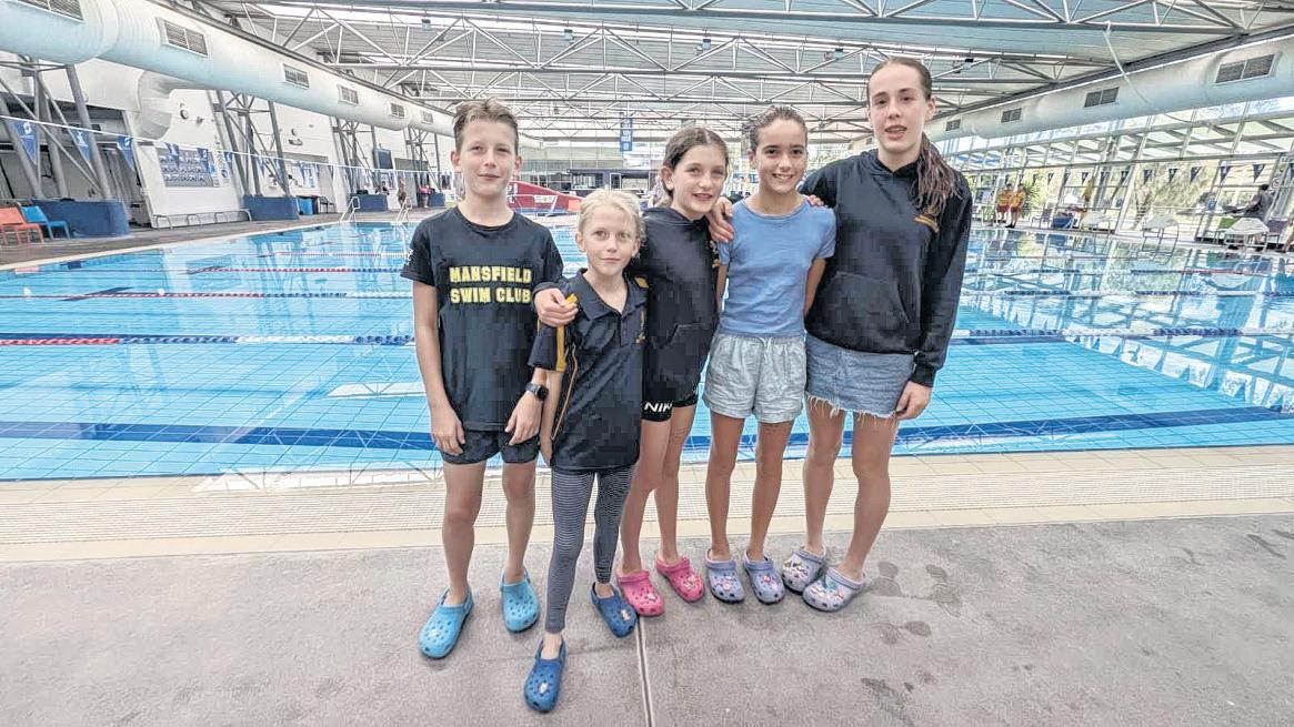 MANSFIELD SWIMMERS: In Shepparton, (from le ) Harvey Knight, Vivian Knight, Heidi Setchell, Liana Smith, Keziah Wolfe.