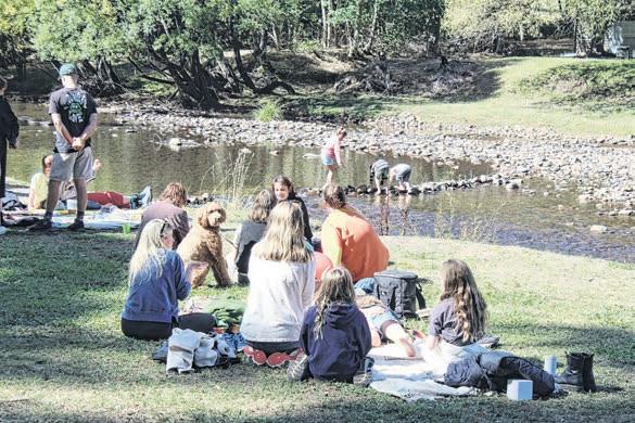 Dotted with picnic blankets many festival visitors set up base by the river basking in the sunshine, dangling their feet in the water and enjoying the great food and drink on o er, with a backdrop of good tunes delivered by local musicians.