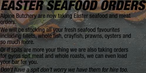 Alpine Butchery are now taking Easter seafood and meat orders.