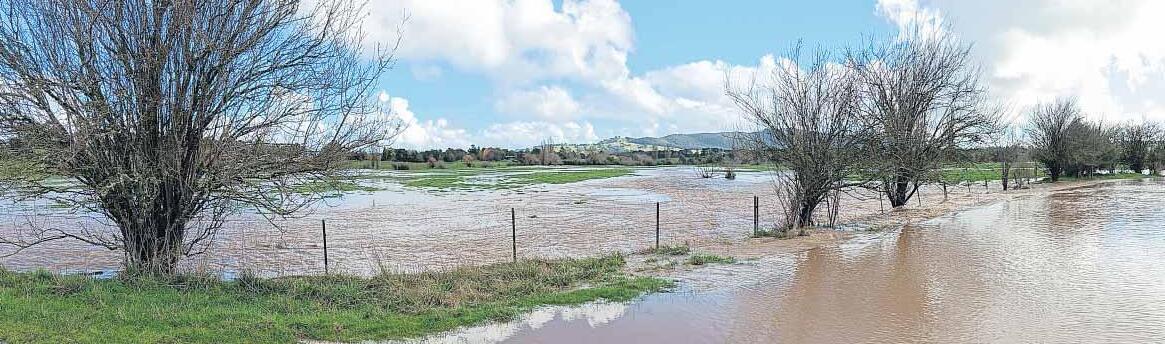 WATER EVERYWHERE: These paddocks at Piries were flooded after a deluge last week with a pair of swans and a stranded fox swimming spotted.