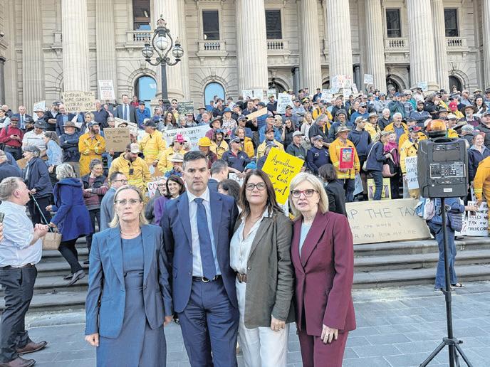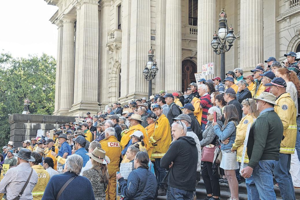 On Tuesday 13 May, over 400 CFA and SES volunteers and sta crammed Parliament House’s steps to protest against the levy and heard from leaders of farming peak bodies and opposition members.