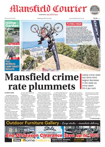 lice’s main foci is a neighbourhood policing framework. “It is all about engaging with the community and seeing where the community needs a police focus and getting the right people around the table to drive that crime down. “That is what we have done in Mansfield and is why we are on the right track.” Across the state, there were 483,441 criminal offences recorded in 2022, representing an increase of 5652 offences or 1.2 per cent from 2021. ■ Continued page 3