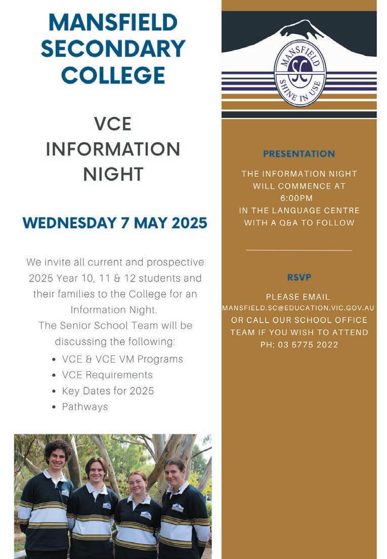 Further details can be found on AusNet’s website: ausnet.com. au/mans eld, and customers can check the status of the planned outage on the day by searching on AusNet’s Outage Tracker: outagetracker.com.au.