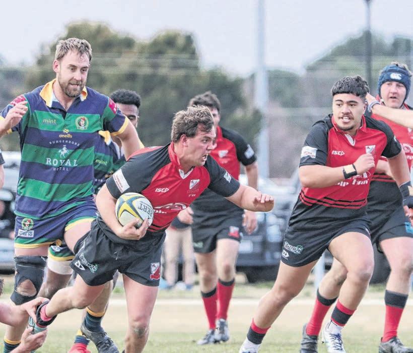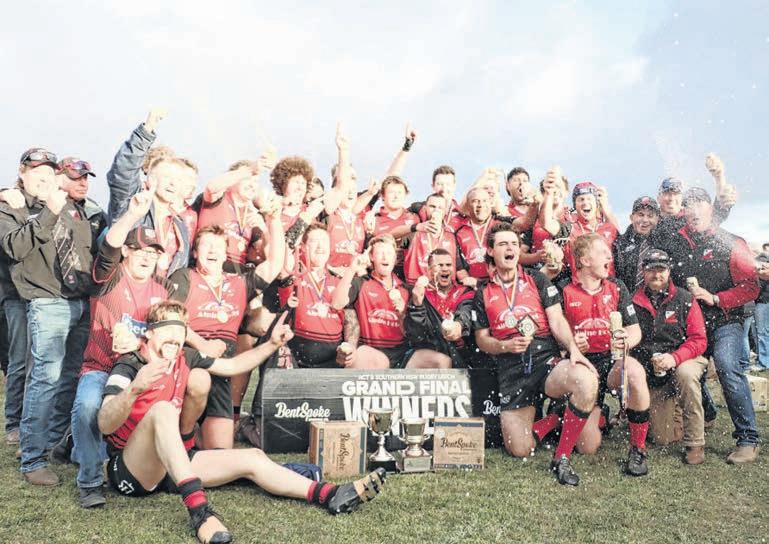 The nal 13 minutes of the grand nal were some of the most nervous for Cooma rugby o cials and supporters, as the side held on to a three point lead. The Cooma men defended with vigour, holding out the Bungendore attack.