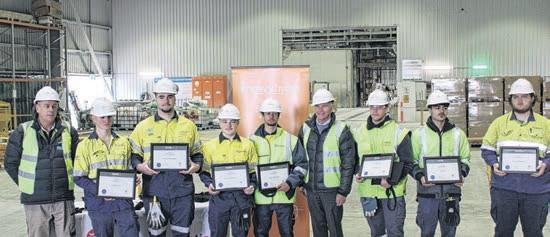 Eight year 12 students received their Certi cate II in Supply Chain Operations at a graduation ceremony held inside the Snowy 2.0 segments factory at Polo Flat. To complete their SBAT, students studied one day of the week at TAFE Cooma, spent a day’s work at the segments factory and three days at school.