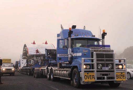 The truck movement saw ve trucks and a trailer, at nearly 100 metres long and 450 tonnes, transport the motor for the Snowy 2.0’s new tunnel boring machine (TBM) Monica to its worksite near Kiandra.