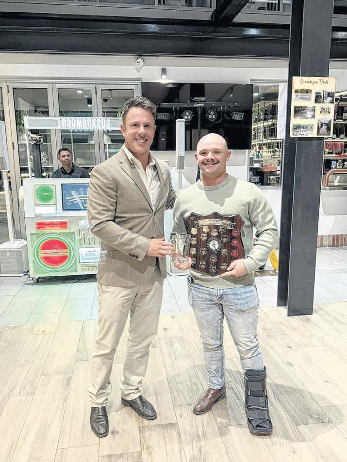 Whiley, presents Rhys Elton with the reserve grade best and fairest honour. Elton’s Bombala grandparents are Rhonda and Alan Feilen and Sandra and the late Rex Elton.