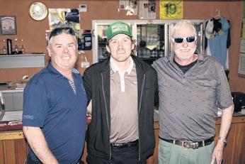 Jason Christie and Alan Parsons are congratulated by Jye Kearney (centre) on a fine round.