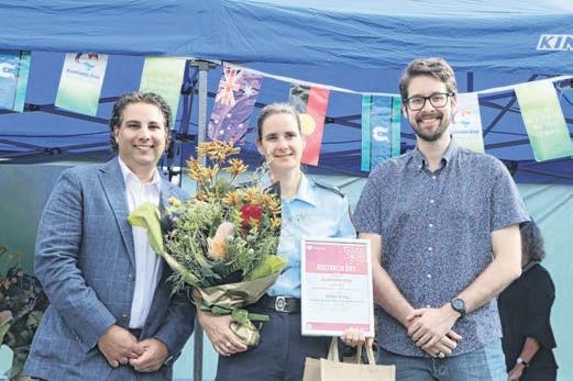 RECOGNISED: Snowy Monaro Regional Council mayor, Chris Hanna, Desiree Firle, and Australia Day ambassador, Ethan Butson. PHOTO: Trista Heath