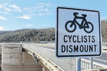 RIDERS crossing the Jindabyne Dam wall are being urged to dismount and walk their bikes across the dam crossing.