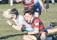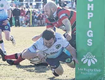 WINNERS: Darcy Alexander scores for the Jindabyne Bushpigs in the side’s 73-15 win over the Cooma Red Devils. The Bushpigs win came as the club celebrated its annual charity round. This year, the club supported Disabled Wintersport Australia. The Bushpigs wore special jerseys for the occasion. PHOTO: Nathan Thompson