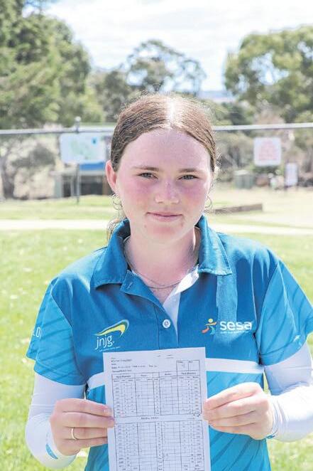 Kortni Houston of the Gungahlin Lakes Club and South East Regional Academy of Sport celebrates winning the junior open and setting a course record in the process.