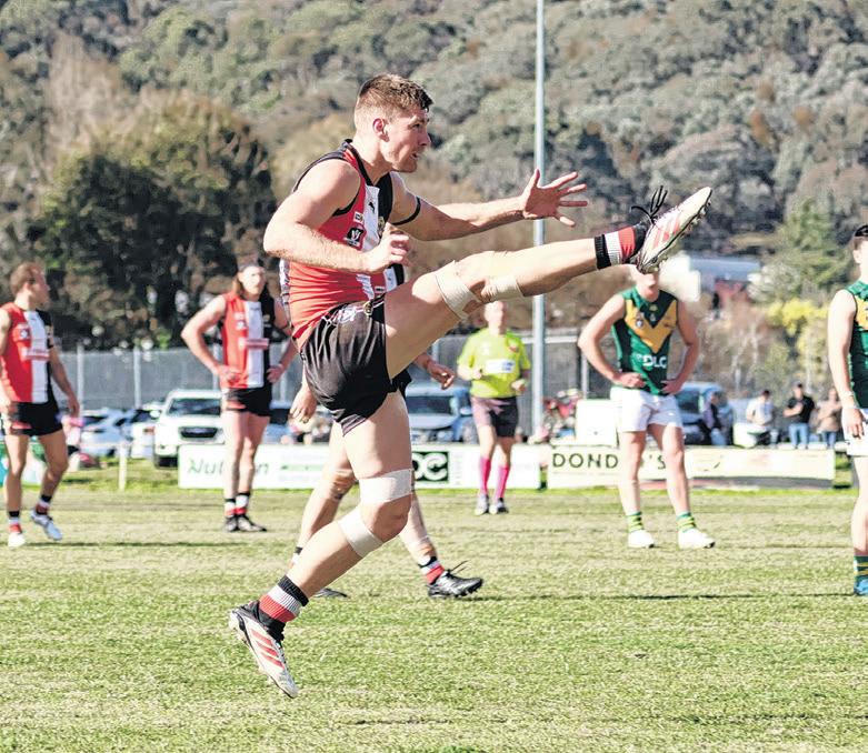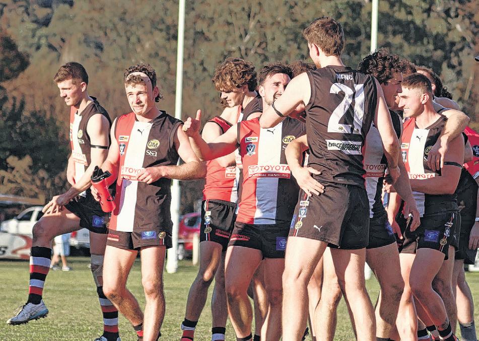 Ryley Sharp booted five goals in Myrtleford’s one-point thriller over North Albury in their last game before finals. The 11.12 (78) to 11.11 (77) win guarantees the senior Saints the double chance for the first time in 19 years.