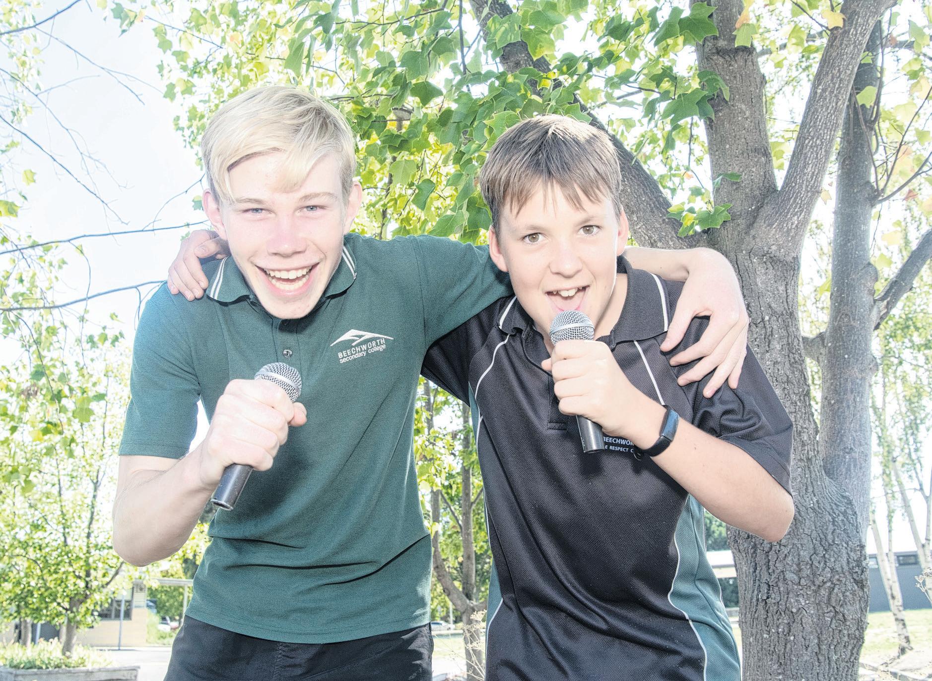 Secondary College students Charlie McLachlan (le ) and Alistair Merritt can’t wait to be emcees at the Golden Horseshoes Festival.