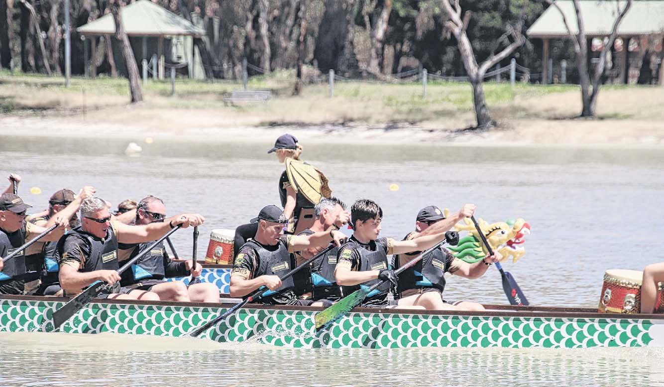Golden Serpents Dragon Boat Club members training hard on Lake Sambell as they prepare to head to the Australian Championships in Perth this weekend.