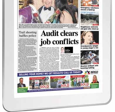 YOUR OVENS AND MURRAY TEAM 37 Rowan Street, Wangaratta VIC 3677 Phone: (03) 5723 0100 Fax: (03) 5721 9447 www.omadvertiser.com.au Classifieds 5723 0101 or classifieds@nemedia.com.au Display Advertising: 5723 0100 or sales@nemedia.com.au Editorial: 5723 0109 or edit.omadvertiser@nemedia.com.au Published by Hartley Higgins for North East Media Pty Ltd, 37 Rowan Street, Wangaratta, 3677. Responsibility for election comment is accepted by Editor Jeff Zeuschner. Copyright: All advertising and editorial content of this issue is the copyright of North East Media Pty Ltd and cannot be used without the company’s permission. NEWSPAPER DEADLINES: • Display ads, bookings ........12 noon Monday • Display ads, copy ...............12 noon Monday • Classifieds ...........................3pm Wednesday • General News ......................9.15am Monday • Sports results .......................9.15am Monday • Letters ..................................9.15am Monday Member Correspondent Coral Cooksley Editorial co-ordinator Bailey Zimmermann Advertising Sales 5723 0100 sales@nemedia.com.au www.omadvertiser.com.au Est. 1855 Follow us omadvertiser.com.au Page 2 - ADVERTISER, Friday, April 12, 2024