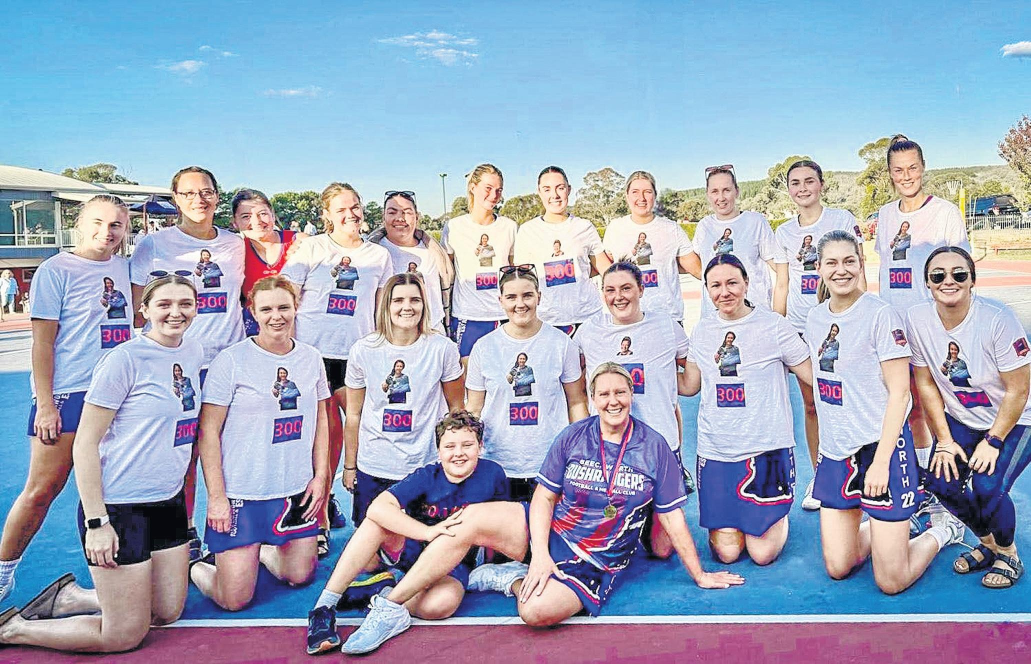 MILESTONE MAGIC: Coby Surrey (bottom right) celebrated her 300th senior match with Beechworth in their first ever home night game last Saturday, with Kiewa-Sandy Creek proving too good in all grades of senior football and netball.