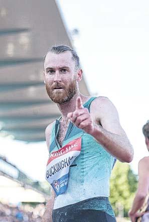 After claiming his first national title in 2023, injuries again reared up, with osteitis pubis symptoms and later bone stress issues, but Buckingham bounced back with second place at the Oceania Championships in June 2024 with a time of 8:44, followed by an 8:21.34 just two weeks later in Finland.