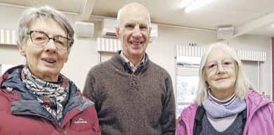 CATCHING UP: Chris Brett, Peter Brett and Enid Stone got chatting at last week’s Winter Warmers event.